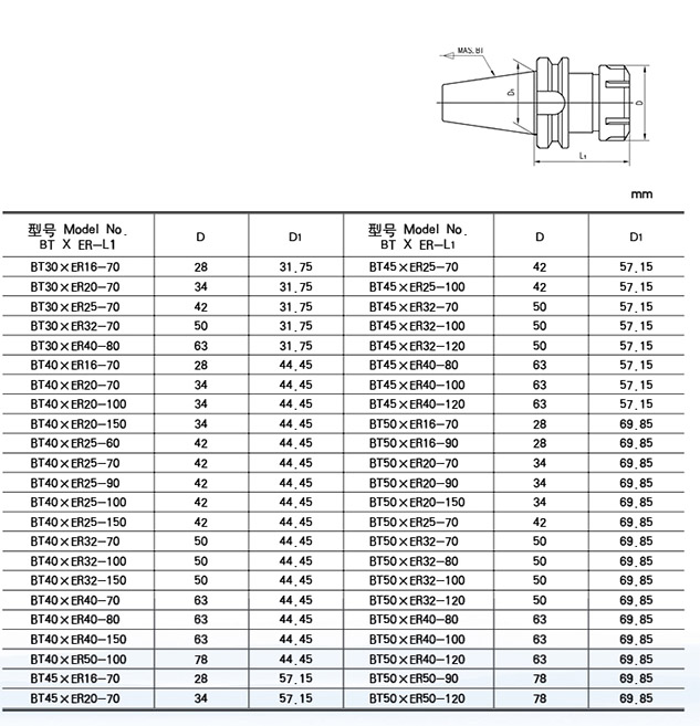 1. 訂購(gòu)時(shí)請(qǐng)注明刀柄的標(biāo)準(zhǔn)形式。如需中心進(jìn)水與法蘭盤側(cè)面進(jìn)水冷卻的刀柄,請(qǐng)標(biāo)明AD/B型, 如BT40AD/BXER32-70。 2. 根據(jù)需要可提供動(dòng)平衡刀柄,標(biāo)準(zhǔn)精度為G6.3/12000rpm,精密精度為G2.5/20000rpm, 訂購(gòu)時(shí)請(qǐng)注明具體精度。