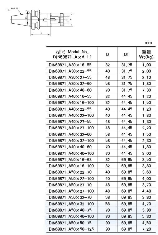 DIN 錐數(shù)控混合插入式銑刀桿