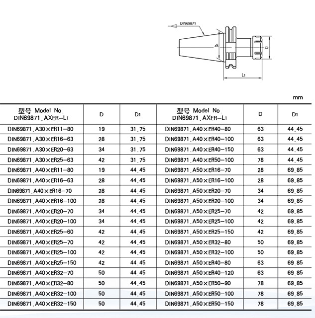 1. 訂購(gòu)時(shí)請(qǐng)注明刀柄的標(biāo)準(zhǔn)形式。如需中心進(jìn)水與法蘭盤(pán)側(cè)面進(jìn)水冷卻的刀柄,請(qǐng)標(biāo)明AD/B型, 如BT40AD/BXER32-70。2. 根據(jù)需要可提供動(dòng)平衡刀柄,標(biāo)準(zhǔn)精度為G6.3/12000rpm,精密精度為G2.5/20000rpm, 訂購(gòu)時(shí)請(qǐng)注明具體精度。