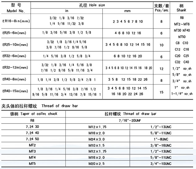 ER 套裝銑夾頭